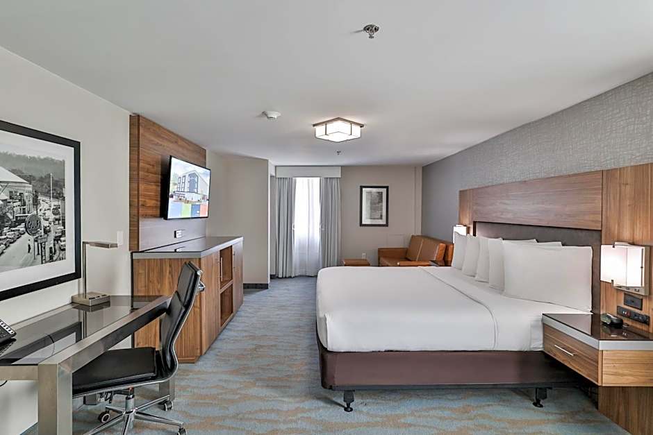 This wheelchair accessible double room has a tea and coffee maker, a seating area with a TV and a toilet with grab rails. The unit has 1 bed.